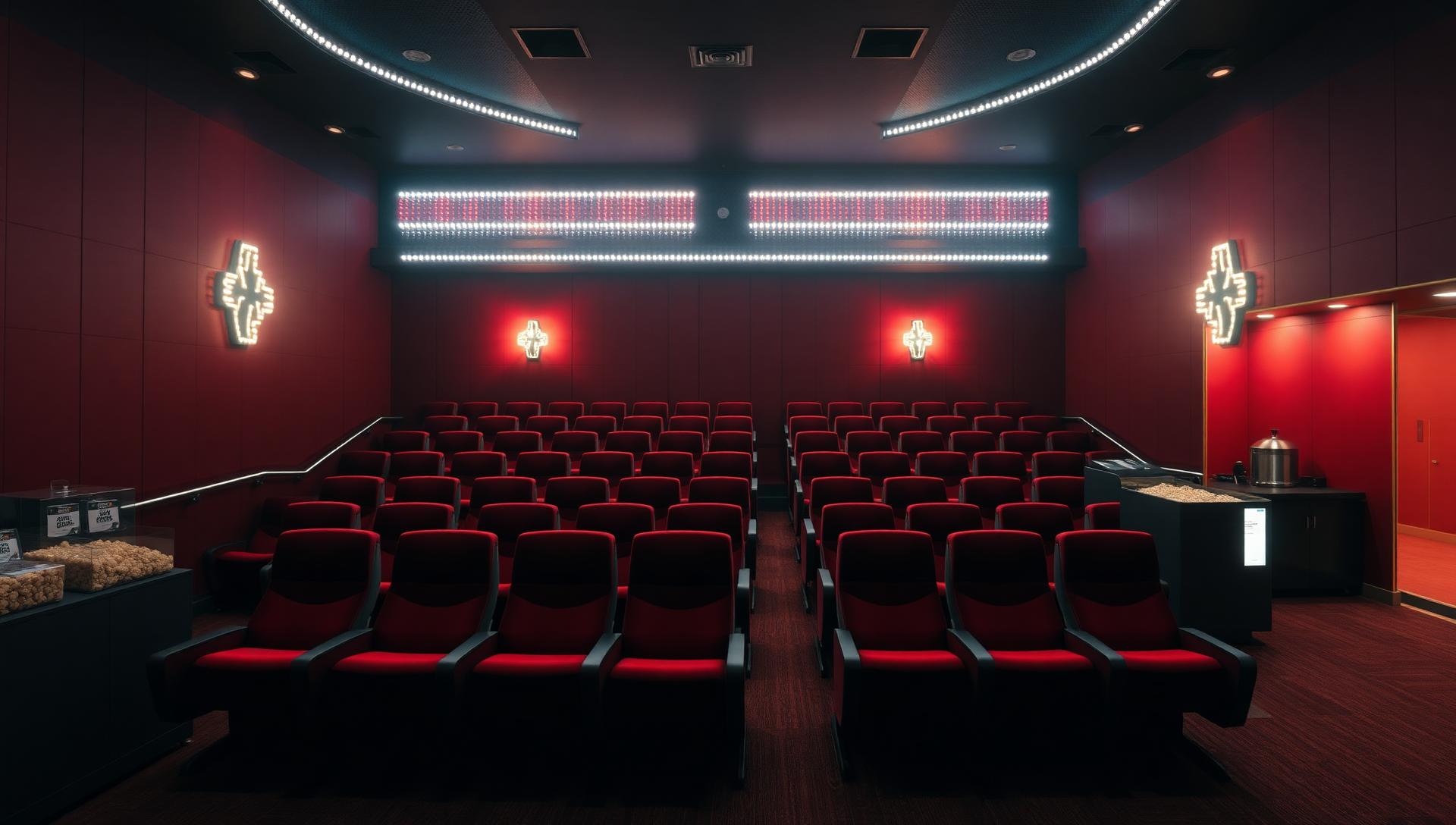 Komfortable røde sæder, moderne digital projektion og krystalklar lyd i begge sale.